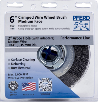 Crimped Wire Wheel Brush Unthreaded Heavy fill density results in more wire points for more brushing action and longer life. Designed for seamless gang mounting without parting lines.